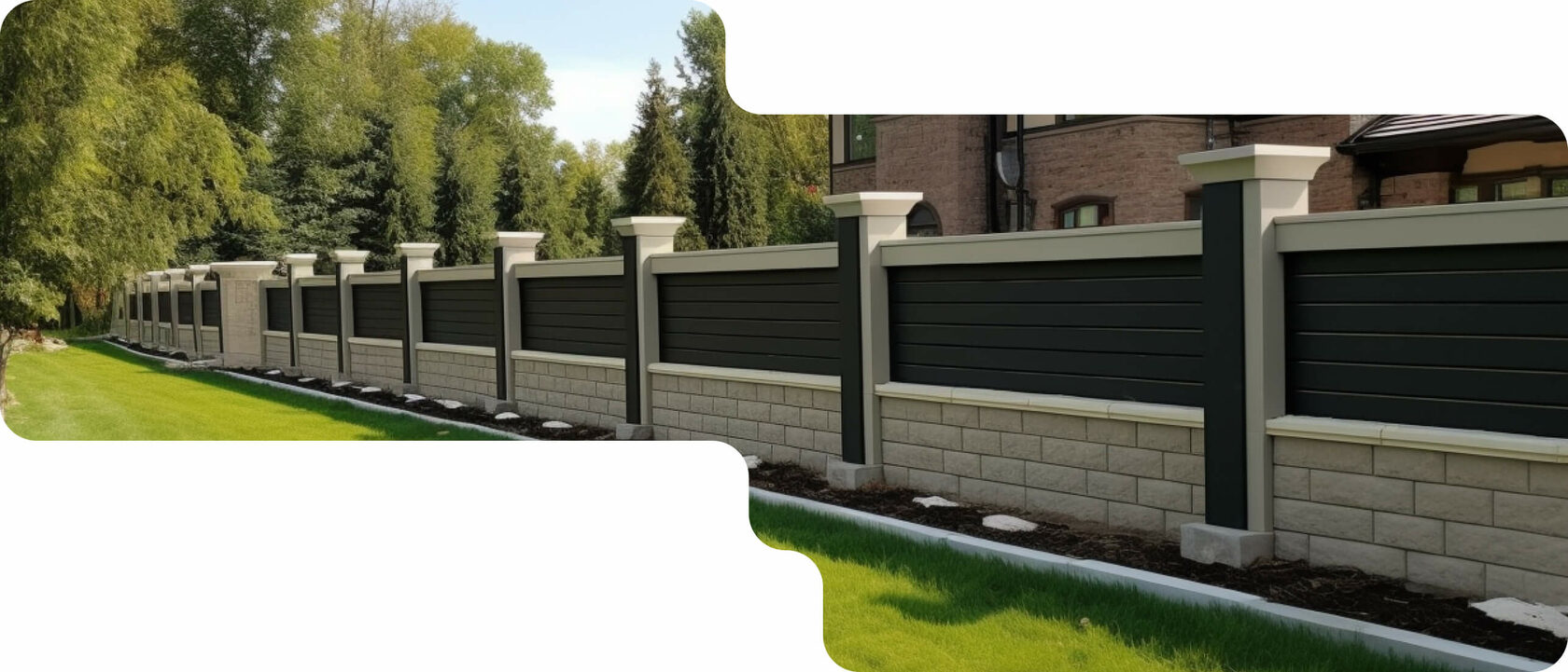 Вы сможете подобрать ограждение по своему вкусу — предлагаем на выбор разные размеры и высоту столбов, комбинации материалов и оттенков